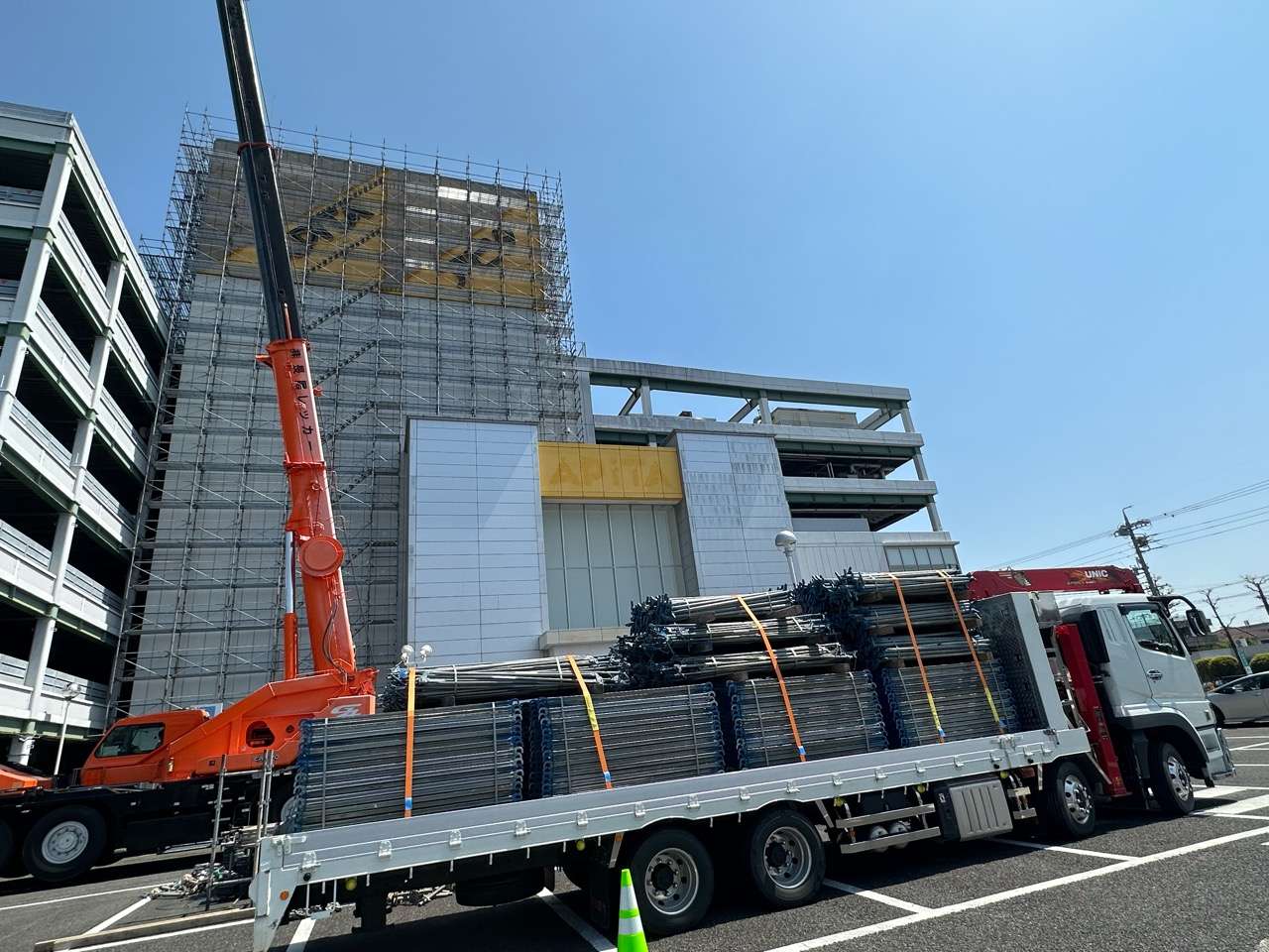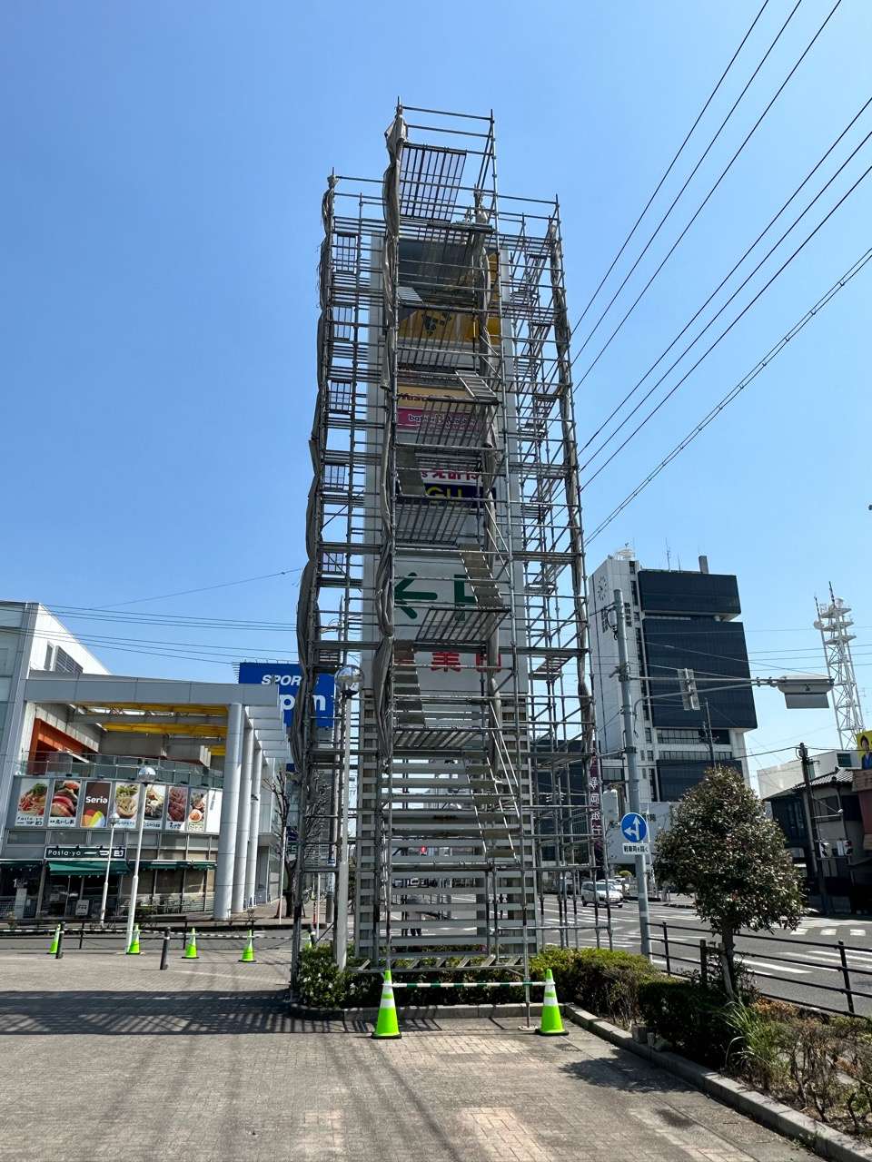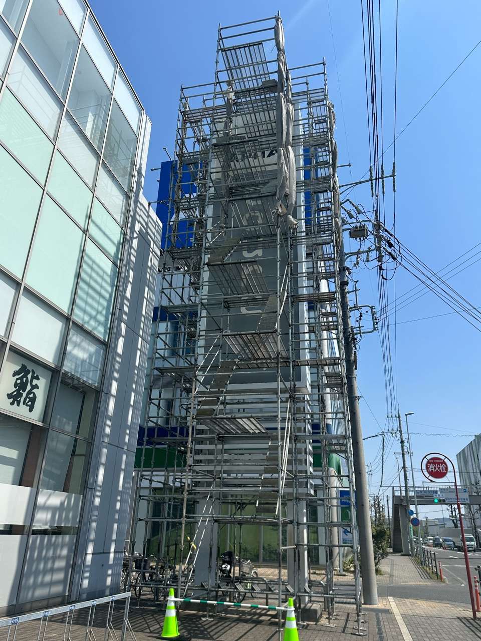 看板改修用外部足場工事 2025/04/17 今週から施工を進めてます役3000平米の静岡市内看板改修用外部足場工事になります。大型店舗閉店に伴う足場工事で周囲の交通量も多く非常に目立つ現場での作業です。弊社職人の皆んなも常に見られてる意識を持って作業を進めてくれています。今週を目処に引渡しをさせていただきます。最後まで気を抜く事無く、安全第一、工程厳守、作業性の良い足場工事を心掛け作業を進めて行きます。